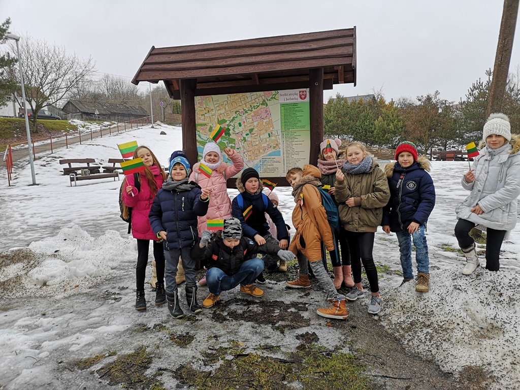 Vasario 15-ąją dieną 1-8 klasių ir Girdžių skyriaus mokiniams buvo nepamokinė diena, skirta Lietuvos valstybės atkūrimo dienai. Susirinkę į savo klases kalbėjo kodėl Vasario 16-oji svarbiausia valstybės šventė? Vėliau visos klasės pagal sudarytus maršrutus išėjo pasivaikščioti po miestą: Nepriklausomybės žingsniai Jurbarke. Pagal šūkį: suradau, pamačiau, sužinojau vaikščiojo po miesto gatves. Mokiniai rado paminklų, informacinių lentų, gamtinių, istorinių objektų. Stebėjosi visi, praeinam ir nepastebime, kiek įdomių dalykų yra mūsų mieste. Su gražiais įspūdžiais, emociškai praturtėję grįžome į mokyklą aptarti, ką pastebėjome, suradome, sužinojome, kaip pasikeitė mano gimtasis miestas.