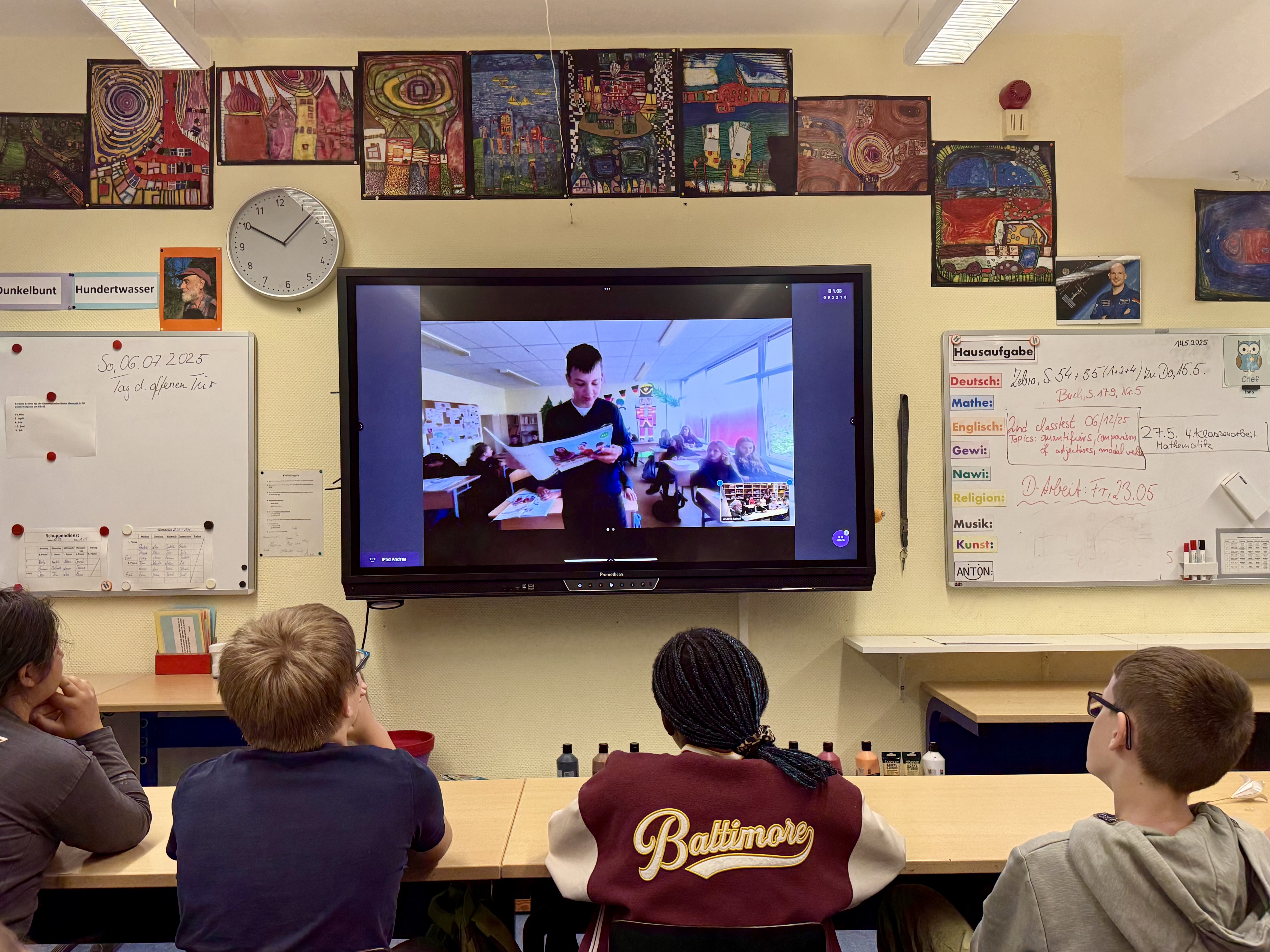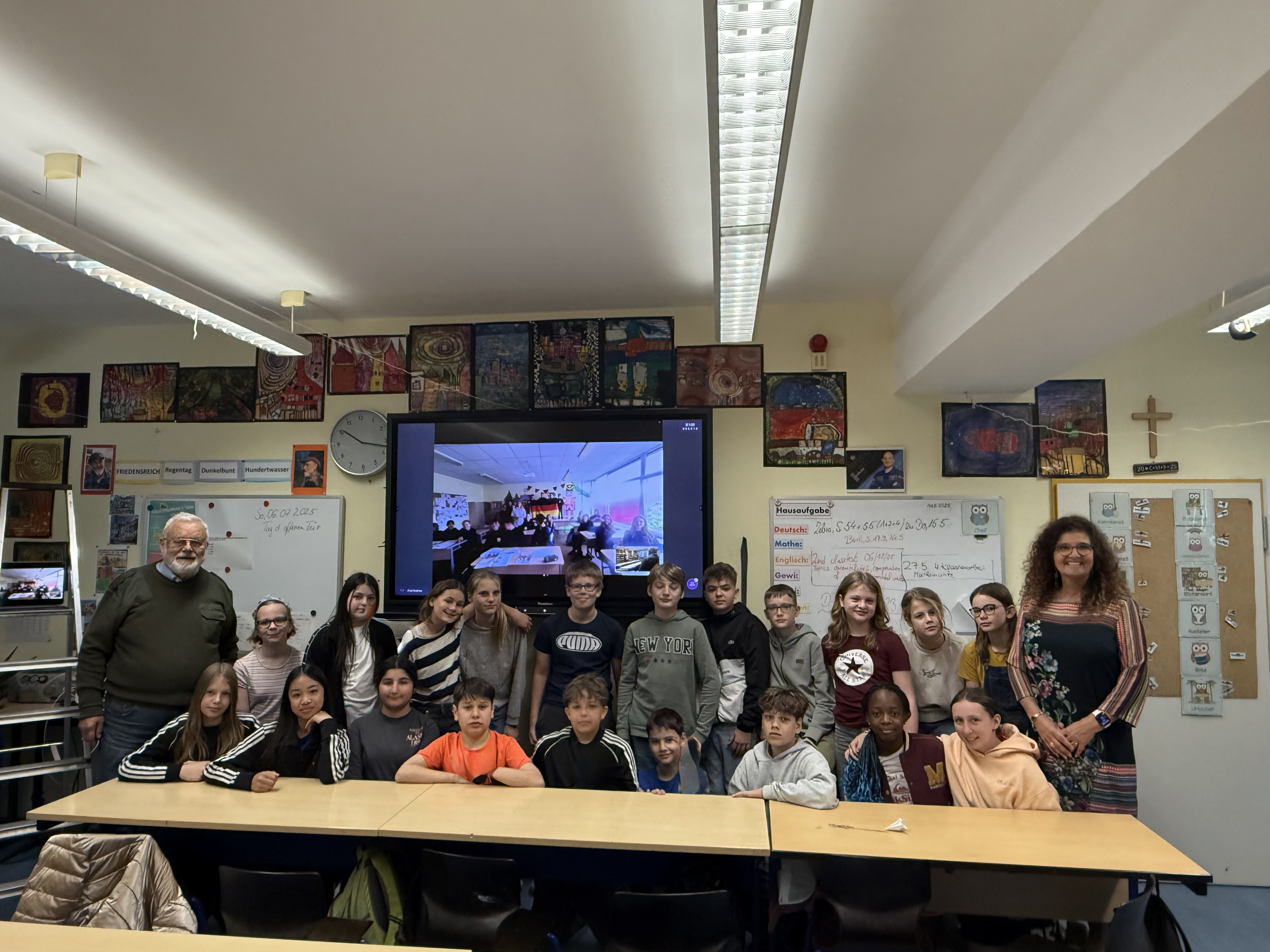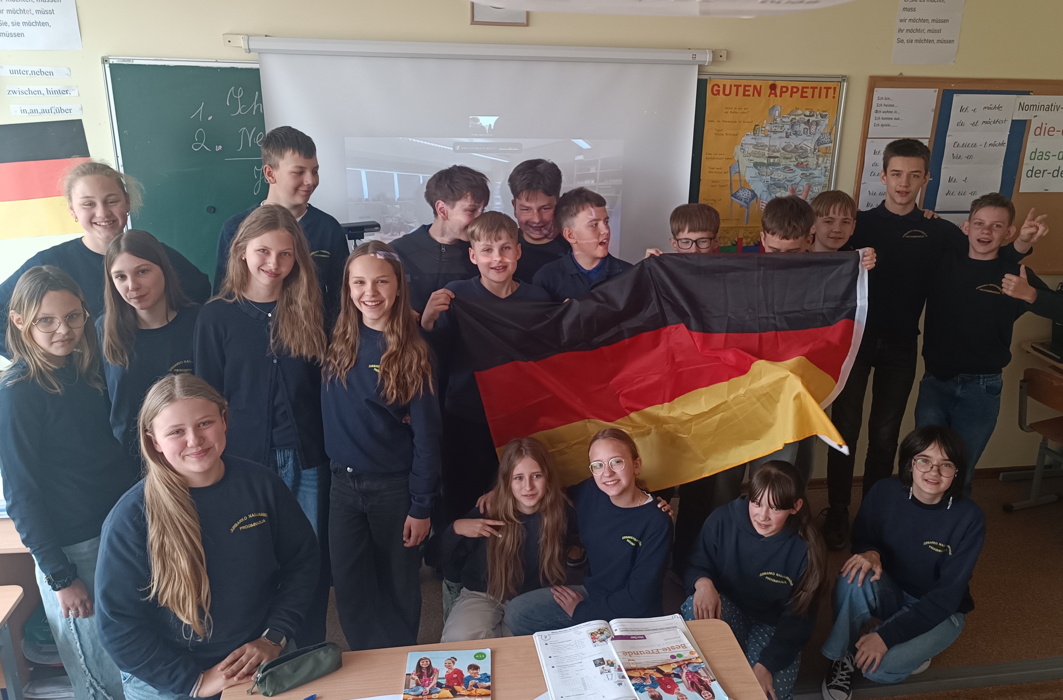 Gegužės 14-ąją įvyko ypatinga pamoka: 6-os klasės mokiniai iš Vokietijos susitiko virtualiai su 15 vokiečių kalbos besimokančių mokinių Lietuvoje. Per 40 minučių vaikai susipažino, pristatė save, pasidalino pasakojimais apie savo šeimas ir uždavė vieni kitiems klausimus. Šypsenos ekranuose kalbėjo pačios už save!