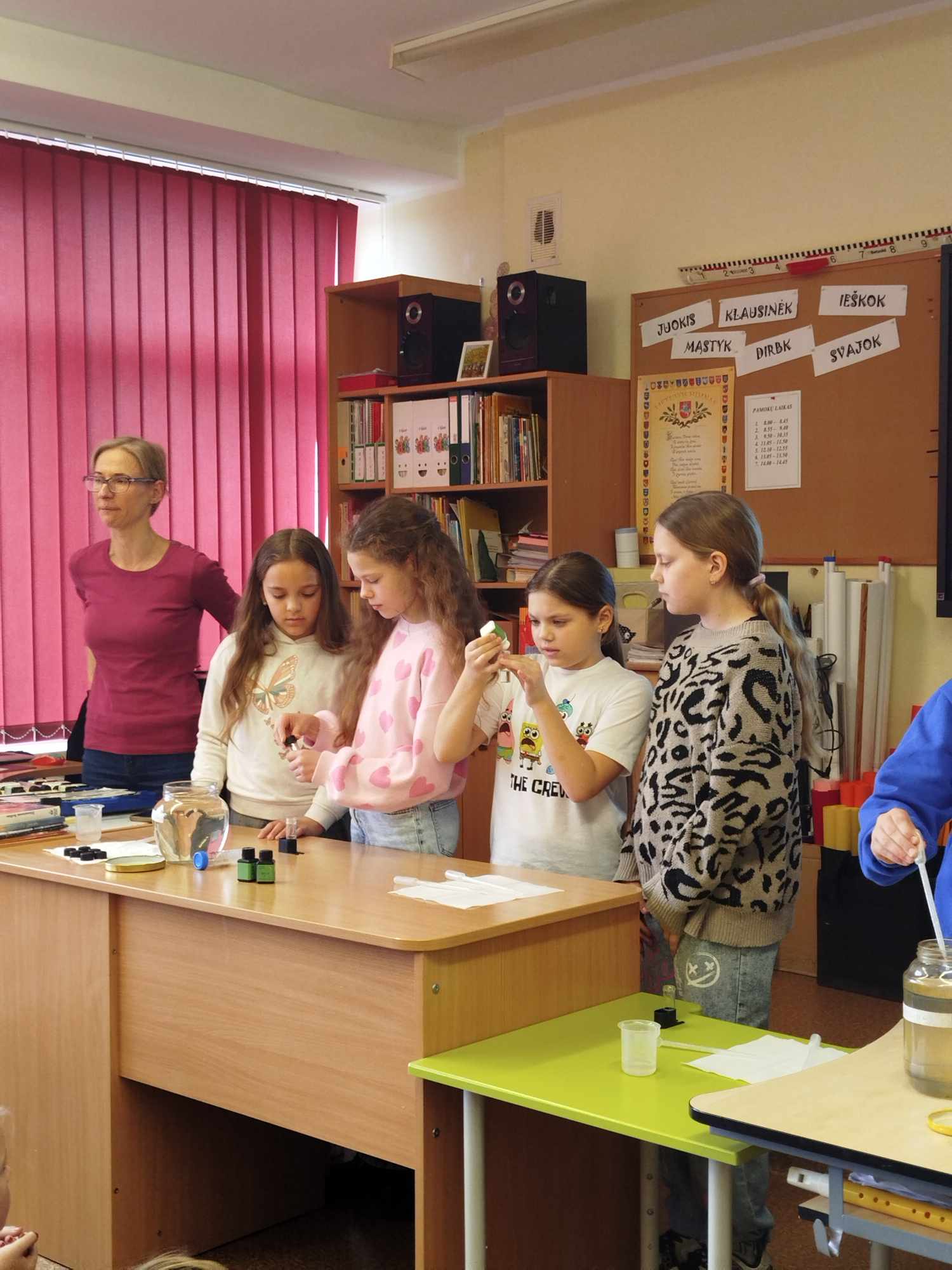 Nuo pat ryto klasėse šurmuliavo entuziastingi mokiniai, pasiruošę pasinerti į eksperimentų pasaulį. Tarp ryškiausių veiklų – interaktyvios laboratorijos „Įdomieji eksperimentai“, „Kvapas ir spalva“, „Vandens tyrimai ir ekologija“ bei nuotolinė „Robotikos“ laboratorija. Kiekvienas vaikas turėjo galimybę patirti tikro mokslininko džiaugsmą – stebėti reakcijas, atlikti tyrimus, daryti išvadas ir pristatyti rezultatus draugams.