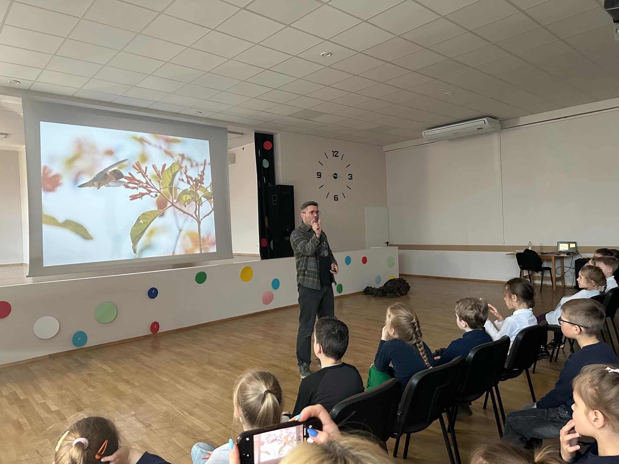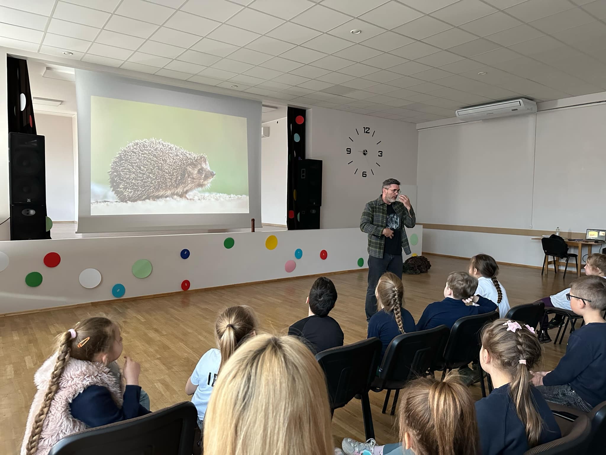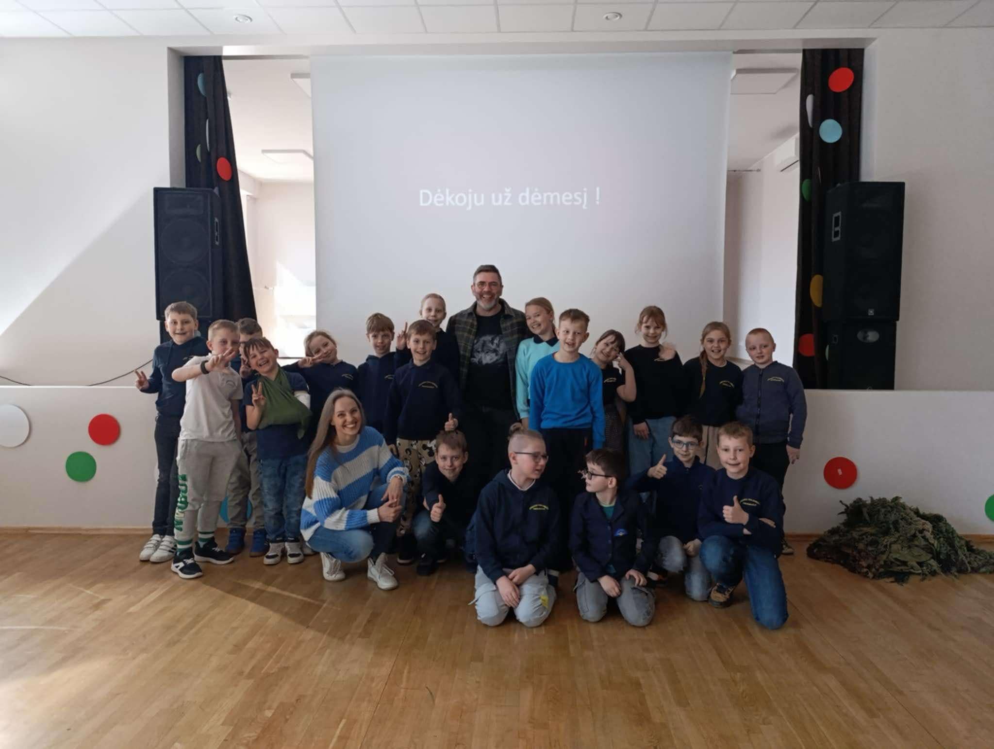 Balandžio 15 dieną pradinių klasių mokiniai susitiko su gamtininku, televizijos laidų kūrėju ir gamtos fotografu Mariumi Čepuliu.