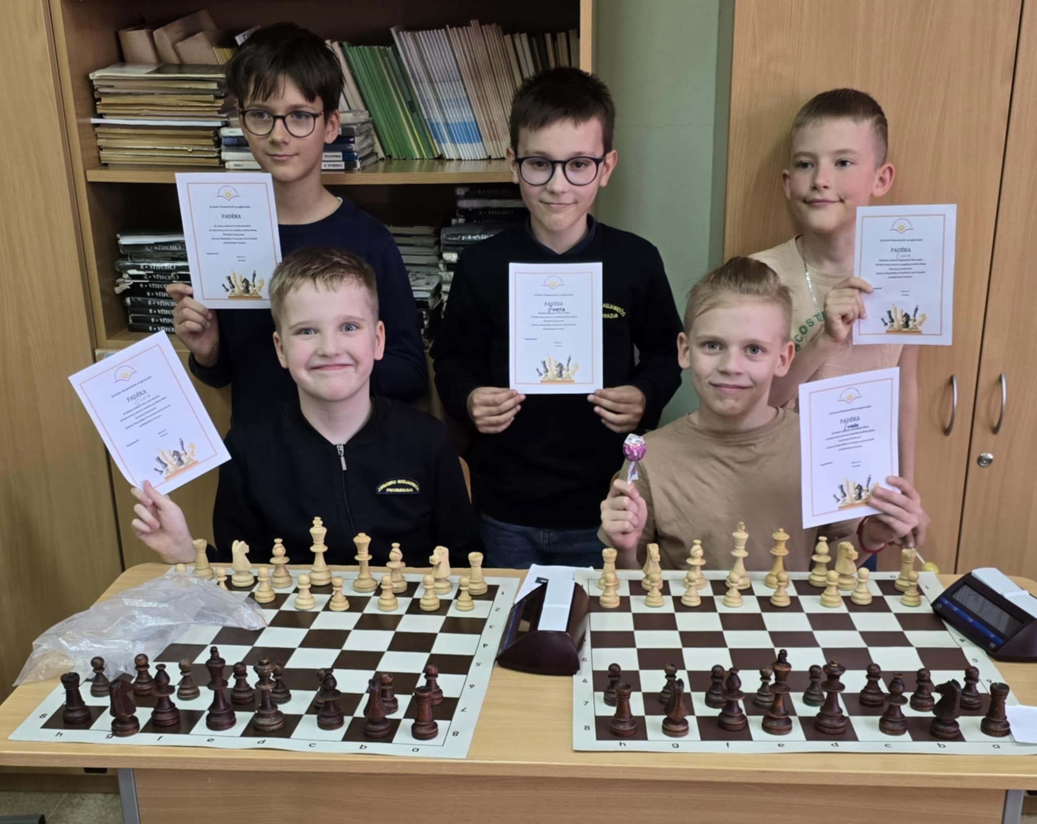 Komandinėje įskaitoje trečius metus iš eilės 4b klasės komandai - Adui Ambrakaičiui, Benediktui Ažnai, Žygimantui Murauskui, Dovydui Masaičiui, Aronui Puišiui, surinkusiai daugiausiai taškų, pavyko laimėti 1 vietą ir iškovoti teisę dalyvauti Lietuvos mokyklų pradinių klasių šachmatų čempionate LIETUVOS RESPUBLIKOS PREZIDENTO taurei laimėti.