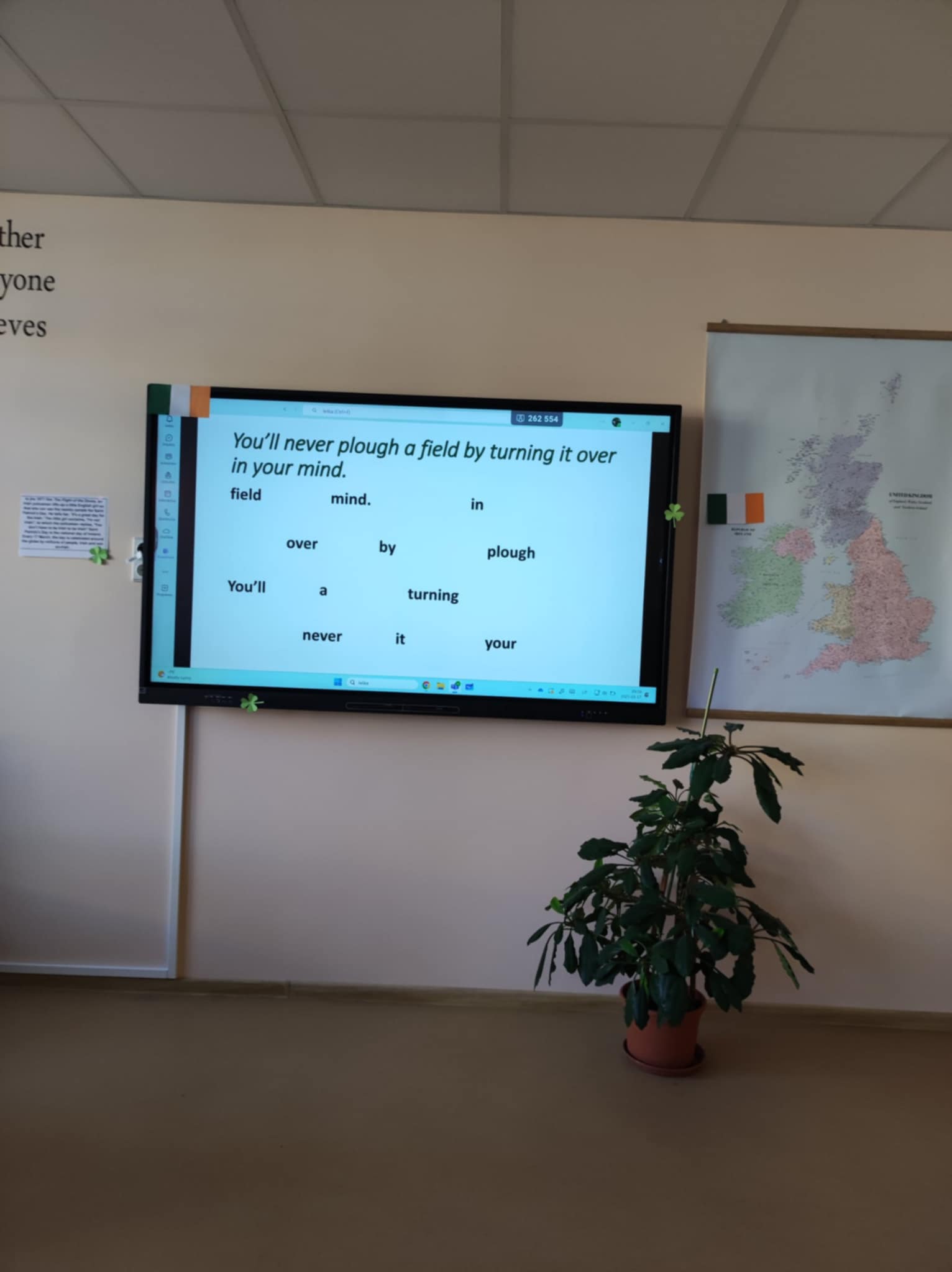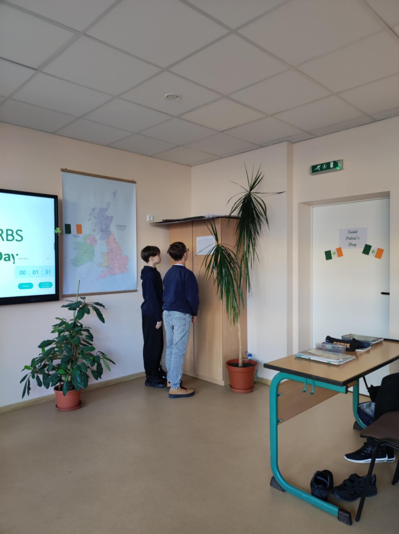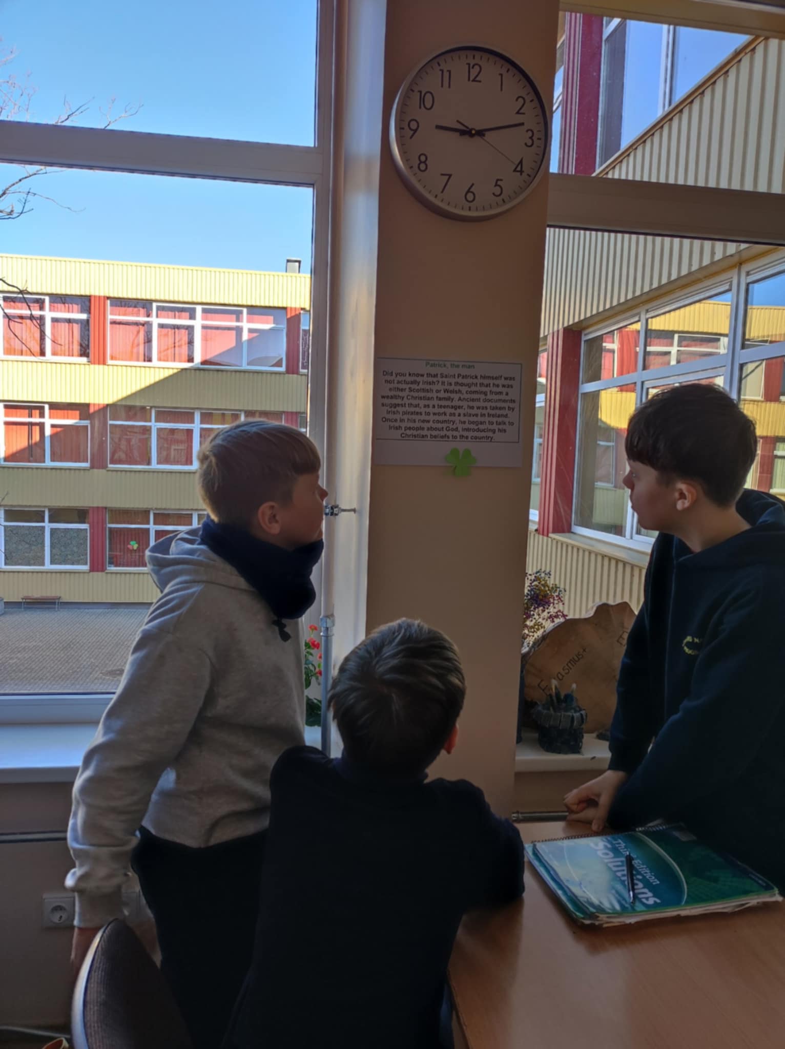 Kovo 17 dieną pasaulis mini šv. Patriko dieną. Vieni žygiuoja parade, kiti dažo upes žaliai, o Jurbarko Naujamiesčio progimnazijos mokiniai, padėdami vieni kitiems suprasti informaciją, atsakinėjo į viktorinos klausimus ir aiškinosi airiškų patarlių reikšmes.