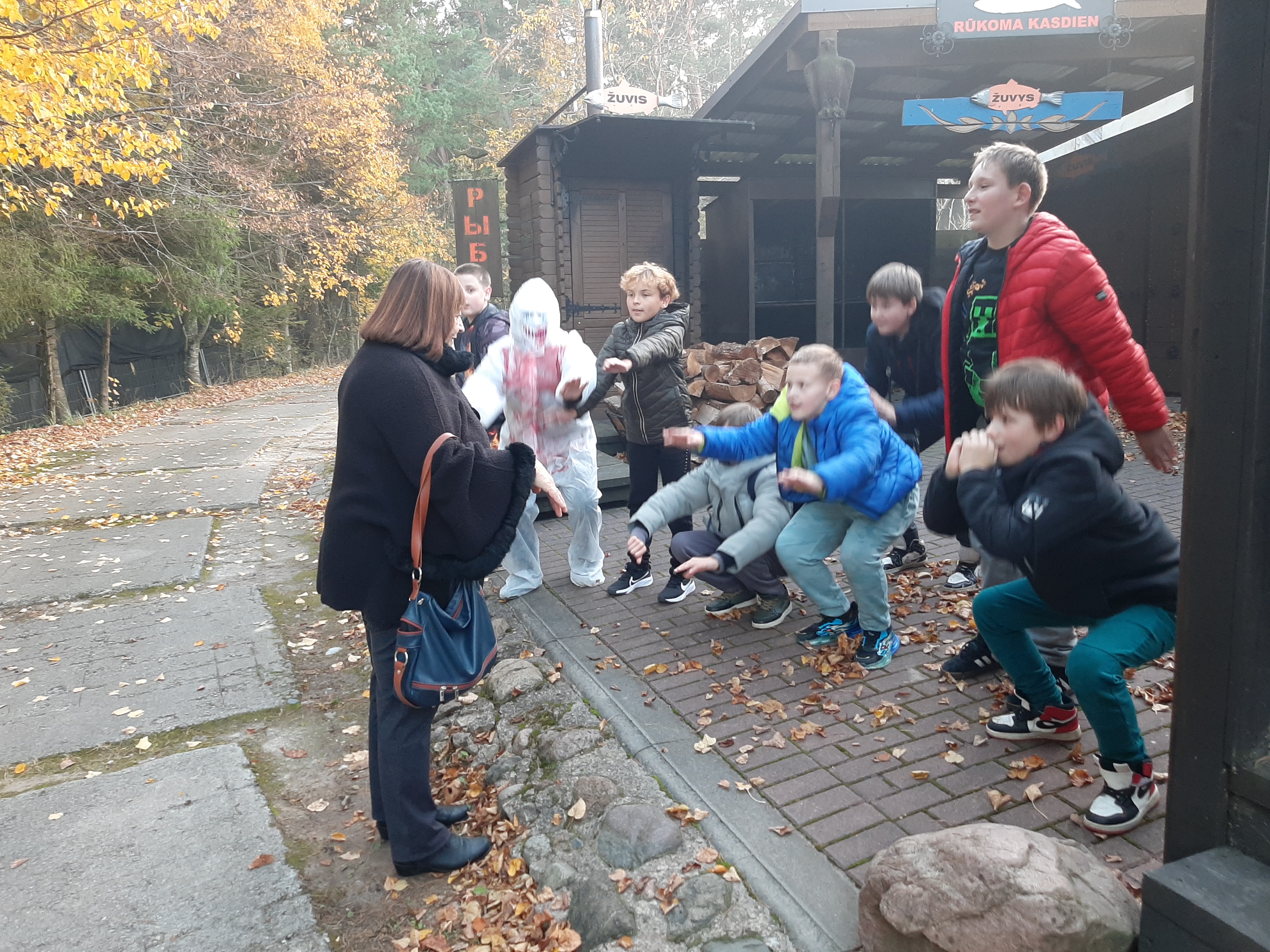 Spalio 25 dieną 7c ir 5a klasės mokiniai, lydimi mokytojų Vitalijos Majorovienės, Danguolės Juščienės ir Ovidijos Unčiurienės vyko į edukacinę – pramoginę ekskursiją į Klaipėdą ir Palangą. Pirmiausia sustojome Karšuvos girioje prie 1422 metų Melno taikos sutartimi nustatytos sienos tarp Lietuvos ir Kryžiuočių ordino. Vaikai autobuse išklausė pasakojimus apie Tauragės, Šilalės lankomus objektus, automagistralės statybų įdomiuosius aspektus, Lietuvos miškų ypatumus, pelkių panaudojimą kovoje su išorės priešais ir Klaipėdos miesto svarbą valstybei. Susipažino su gido profesija. Penktokai lankėsi Palangoje. Vaikščiojo po didikų Tiškevičių parką, aplankė rūmus, gėrėjosi Birutės kalnu ir koplyčia, maldoje prašė saugios kelionės. Su Baltijos jūra sveikinosi triukšmingai ir pakiliai, žaidė gaudynių, išbandė savo balso stygų stiprumą. Septintokai lankėsi Klaipėdoje ir stiprino fizinio aktyvumo motyvaciją ledo arenoje, o žiūrėdami filmą, gilino anglų kalbos žinias. Na ir pabaigoje, visi kartu lankėsi HBH pramogų parke, dalyvavo interaktyviame Šiurpnakčio renginyje ,,Psichiatrinė ligoninė“. Visi džiaugėsi turiningai ir smagiai praleista diena.