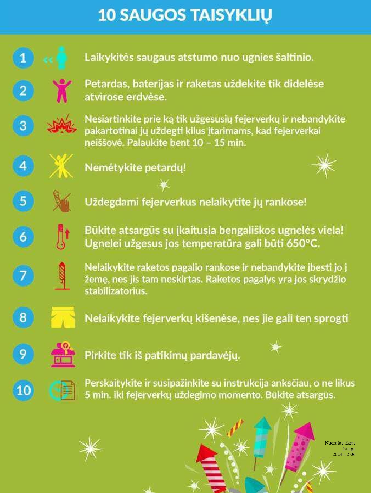 LIETUVOS POLICIJA dalinasi patarimais kaip naudoti pirotechnines priemones saugiai. SAUGAUS ELGESIO REKOMENDACIJOS