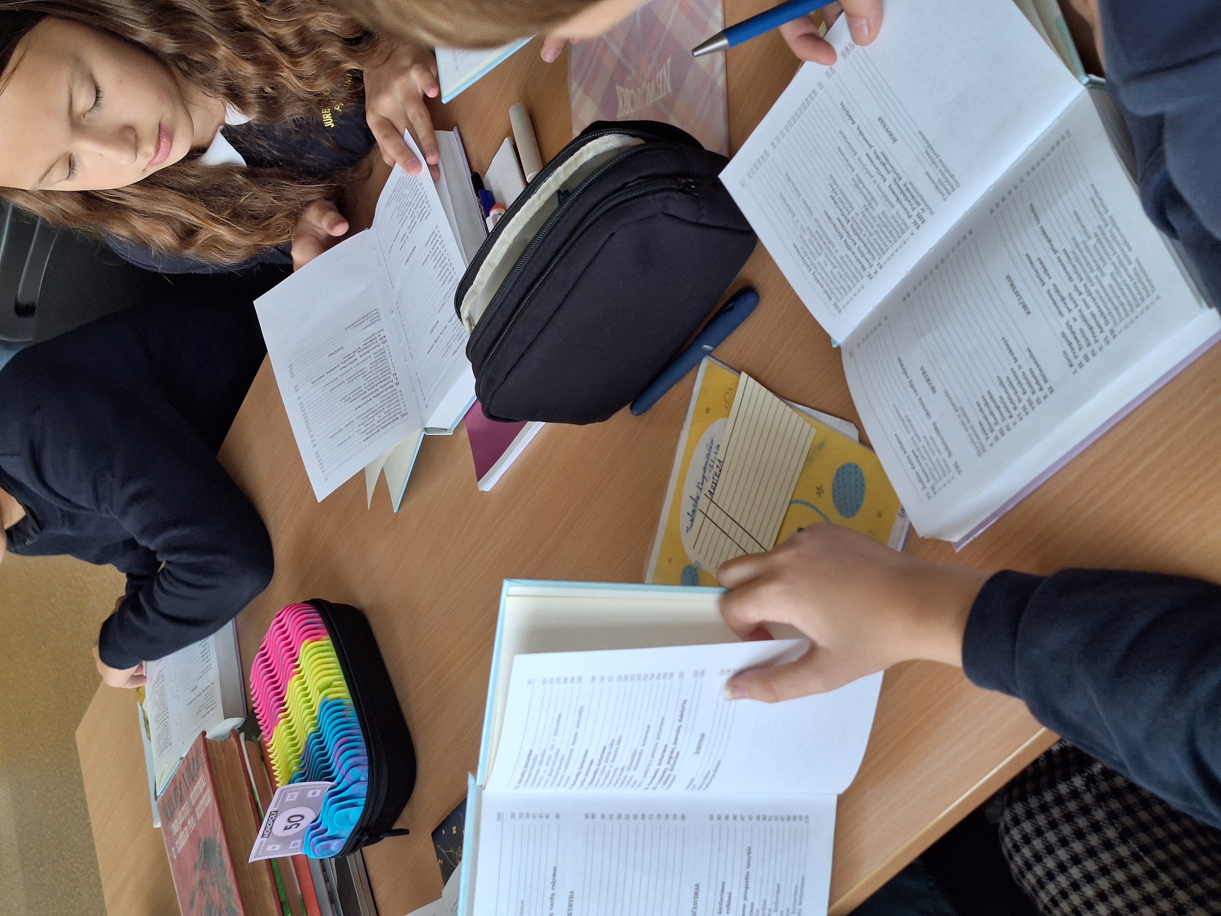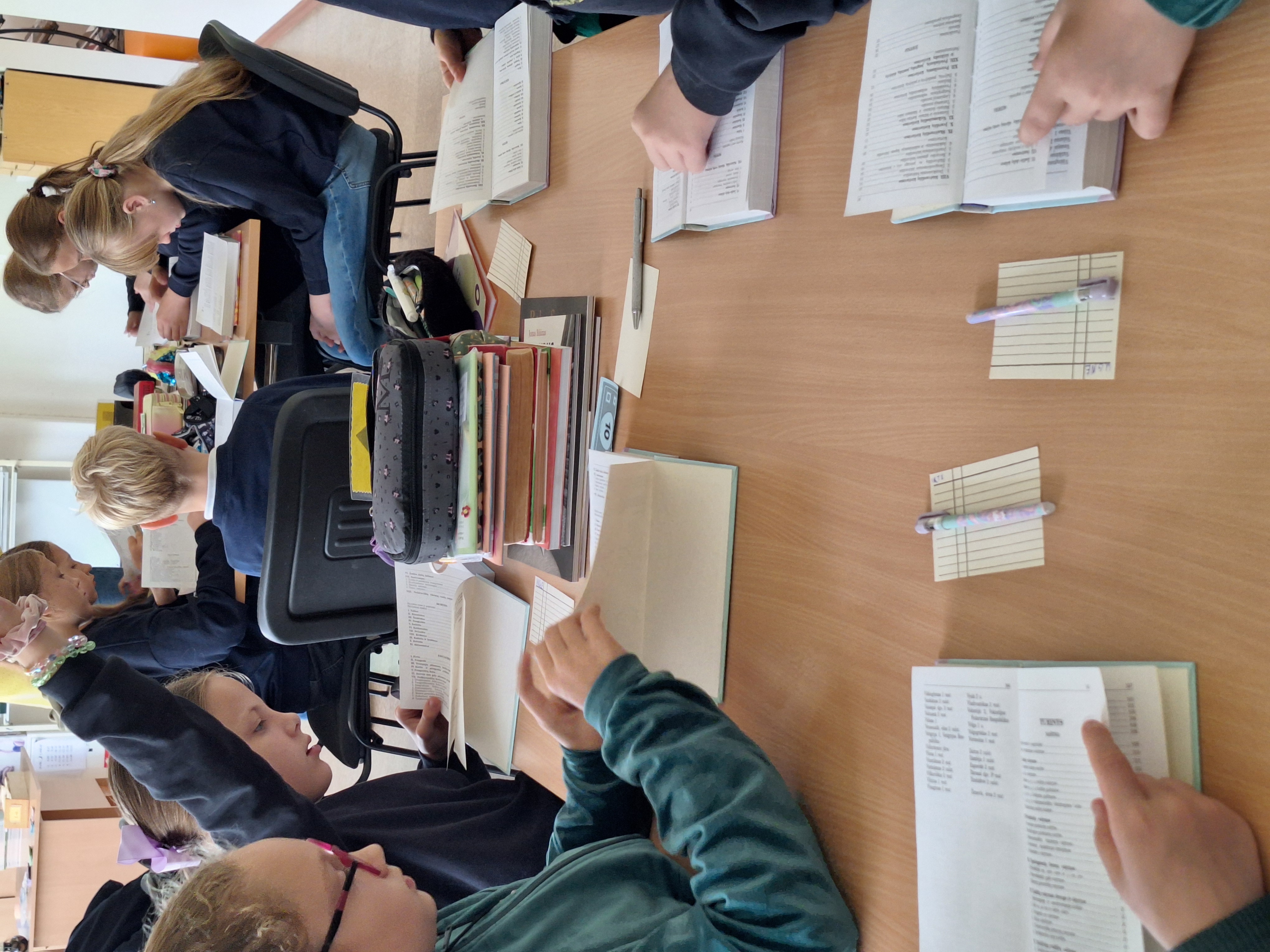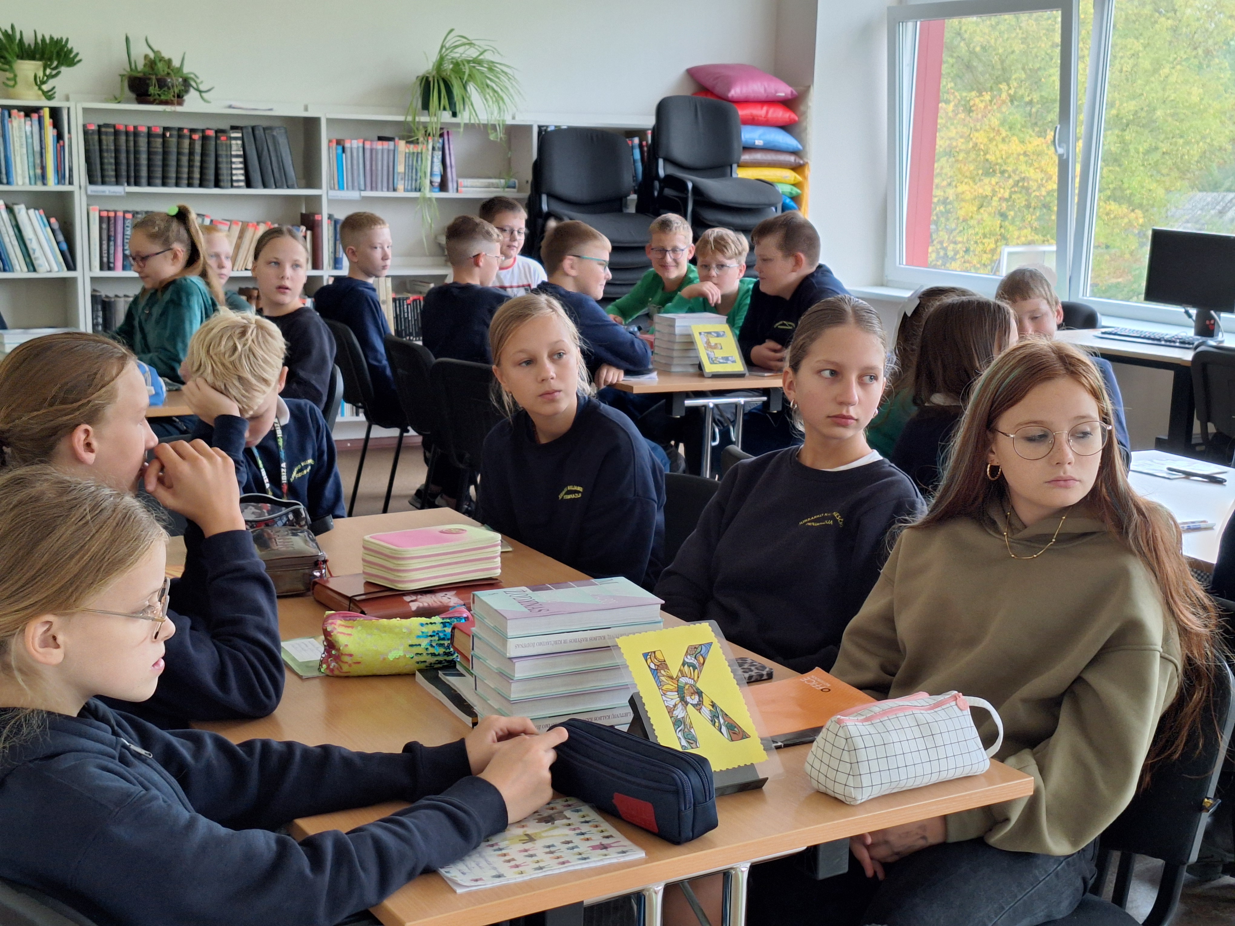 Spalio 10 d. 5c klasės mokiniai rinkosi į lietuvių kalbos pamoką bibliotekoje. Joje sužinojo, kaip sudaryti žodynai ir ką juose veikia ABC. Bibliotekininkė J. Savickienė mokiniams paruošė įdomias užduotis, kurias atlikdami suprato, kad norint rasti norimą knygą ar žodį žodyne reikia gerai mokėti abėcėlę. Mokiniai užsidirbo pinigų, kurie buvo konvertuoti į kaupiamuosius vertinimus. Pamoka buvo įdomi, azartiška ir naudinga.